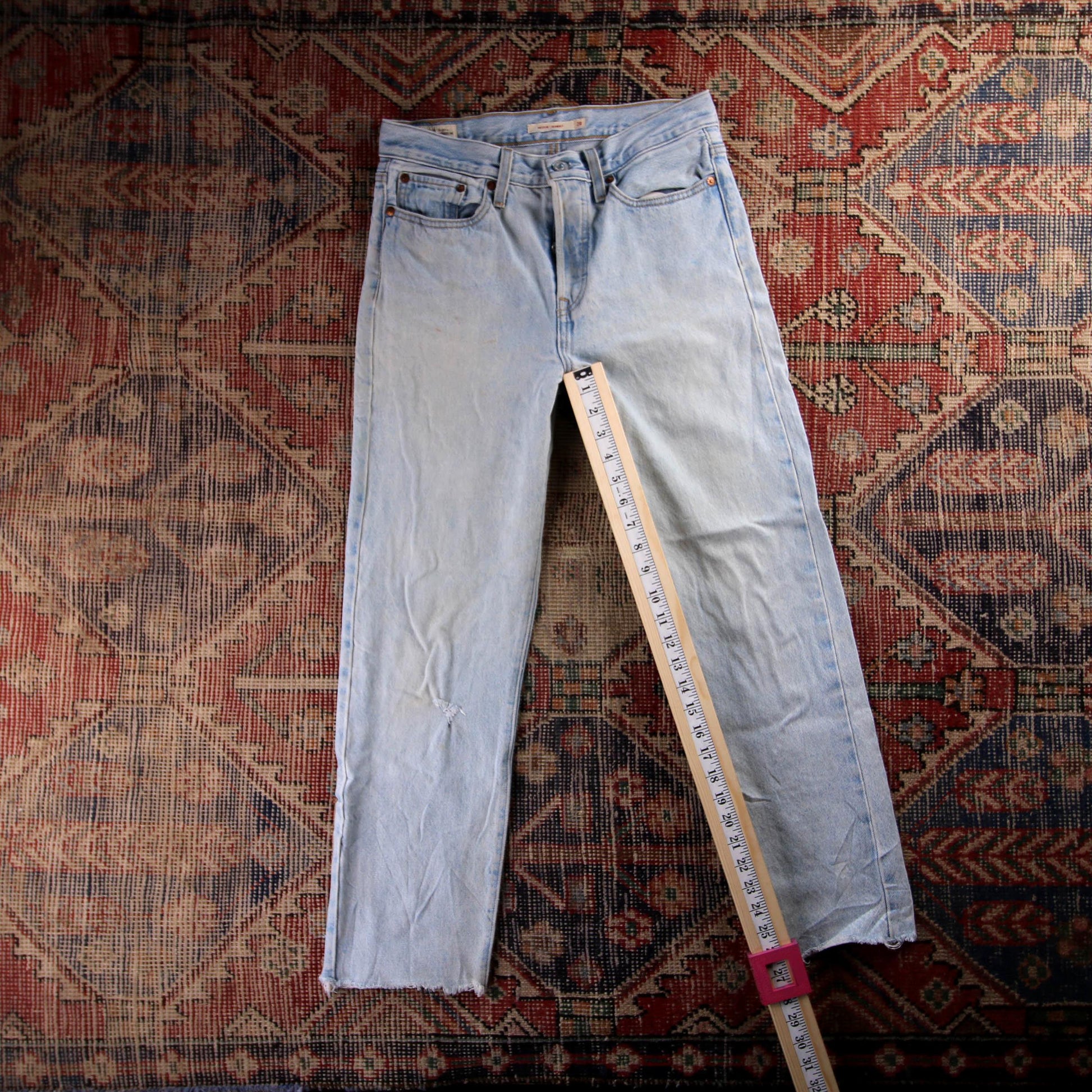 Vintage denim changes size overtime, so I hand measure every pair of jeans.
